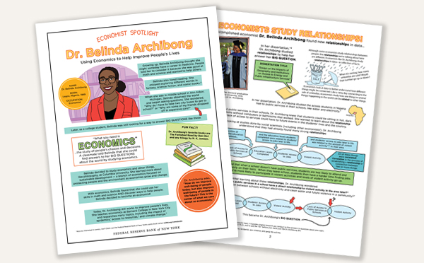 What do economists do? How do economists help shape the world? Economist Spotlights are an engaging activity series for middle school and high school students to spark curiosity and interest in economics as a social studies discipline and a future career. Meet real economists and explore the powerful skills they use—like asking questions, analyzing data, spotting patterns, and understanding complex relationships and issues that drive our economy. Economist Spotlights are available to students, teachers, and community organizations at no charge. Download your digital copy below. Educators may also use the online form to request free printed copies by mail.