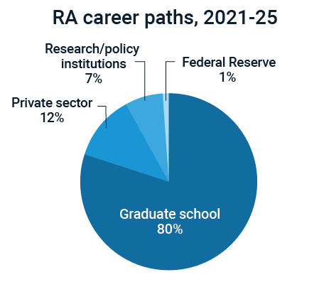 Fortune 500 companies and other top employers are seeking the skills and expertise you will gain as an RA. Former RAs have accepted positions at the Bank, while others have become leaders in the business, banking, higher-education, research, and nonprofit sectors.